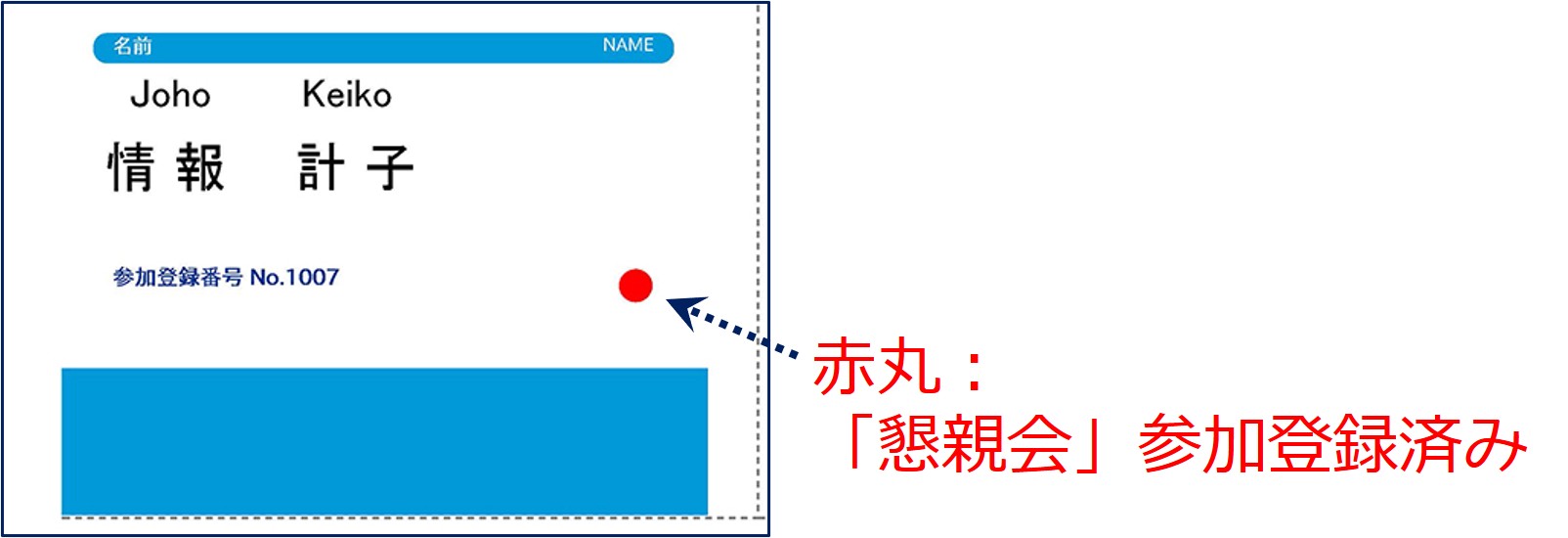 - ※懇親会に参加登録をされた方は、参加証のお名前の横に赤丸●が記載されます。